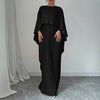Ervaar moeiteloze elegantie met deze sierlijke maxi-jurk met een hoge halslijn, zwierige vleermuismouwen en een prachtig geplooide rok (vergelijkbare modellen te zien bij Couture Emporium) . Gemaakt van lichtgewicht, ademend materiaal, zorgt hij voor vloeiende bewegingen en een flatterende valling – ideaal voor speciale gelegenheden of een chique alledaagse look.