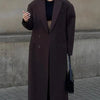Deze jas met dubbele rij knopen en klassieke revers is het toonbeeld van geraffineerde eenvoud. Met zijn rechte, extra lange silhouet straalt hij zowel kracht als elegantie uit, ideaal voor wie houdt van een minimalistische stijl met maximaal effect. De jas is ontworpen met gestructureerde schouders, wat de uitstraling een moderne, gedefinieerde vorm geeft – perfect voor het creëren van een krachtige indruk, of je nu op weg bent naar kantoor of een chique diner.