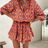 Deze bedrukte jurk is een speels en stijlvol kledingstuk dat perfecte is voor een trendy en moeiteloos chique uitstraling. De opvallende print en zwierige ruches geven het een dynamische uitstraling.