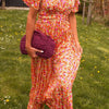 De bloemenprint en het sierlijke silhouet zorgen voor een romantische en vrolijke uitstraling. Perfect voor een tuinfeest, een zomerse dag of een speciale gelegenheid.