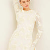 Deze elegante mini-jurk is versierd met verfijnde bloemenborduursels voor een romantische uitstraling. De nauwsluitende pasvorm en de licht uitlopende mouwen zorgen voor een sierlijke tintje.