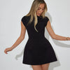 Deze mini jurk met kapmouwtjes combineert een speelse en verfijnde uitstraling. Het ontwerp met kapmouwtjes zorgt voor een subtiele, luchtige uitstraling, terwijl de mini-lengte de benen mooi accentueert. De jurk heeft een strakke pasvorm die de vrouwelijke vormen flatterend benadrukt.