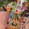 Deze opvallende overhemdjurk brengt zomerse vibes met een speelse tropische print en een flatterende tailleceintuur. De ballonmouwen voegen een hip en luchtig element toe, terwijl de knoopsluiting een klassieke tintje biedt. De soepele pasvorm maakt deze jurk perfecte voor zonnige dagen en ontspannen elegantie.