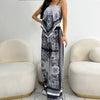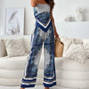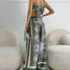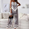 Deze stijlvolle jumpsuit combineert moeiteloze elegantie met een speelse flair. De delicate spaghettibandjes en het luchtige silhouet maken het een perfecte keuze voor warme dagen. De opvallende print voegt een bohemian tintje toe, terwijl de wijde pijpen zorgen voor een flatterende en comfortabele pasvorm.