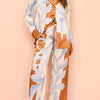 Deze lounge set combineert stijl en comfort op een verfijnde manier. De losvallende blouse met knoopsluiting en bijpassende wijde broek zorgen voor een moeiteloze, chique uitstraling. De zachte stof voelt heerlijk aan op de huid en biedt ultiem draagcomfort.