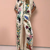 Deze set bestaat uit een loszittende blouse met korte mouwen en een bijpassende short, beide gemaakt van een luchtige en zachte stof die heerlijk aanvoelt op de huid. De prachtige bloemen- en dierenprint geeft deze set een unieke en speelse uitstraling. Ideaal voor zowel ongedwongen als chique gelegenheden.