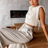 Ontdek de stijlvolle Chique Broek En Top, bestaande uit een elegante broek en een bijpassende top, perfect voor de jonge vrouw die houdt van een minimalistische en modieuze uitstraling! Deze set is gemaakt van hoogwaardige, ademende stoffen die je koel en comfortabel houden tijdens warme dagen. De top heeft een eenvoudige, maar verfijnde snit met een cropped lengte die perfect je taille accentueert. De bijpassende broek heeft wijde pijpen en een elastische tailleband voor een comfortabele en flatterende pasvorm.
