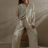 Dit ensemble is ideaal voor zowel ontspanning thuis als voor stijlvolle uitstapjes. Draag het ongedwongen met slippers of sneakers, of maak het chic met hakken en sieraden. De ingetogen uitstraling maakt het geschikt voor zowel loungewear als een sophisticated streethip-uitstraling. De neutrale tint en strakke lijnen zorgen ervoor dat je dit pak eindeloos kunt combineren met andere items in je garderobe.