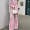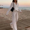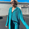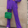 Deze stijlvolle tweedelige set biedt een perfecte mix van comfort en modern ontwerp. De losvallende, geplooide stof zorgt voor een moeiteloze en elegante uitstraling, terwijl de oversized blouse en wijde broek een hip, ontspannen silhouet creëren. Ideaal voor zowel ongedwongen als chique gelegenheden.