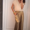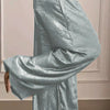 Deze Top met V-hals en broek met wijde pijpen combineert moeiteloos elegantie met comfort. Het losse silhouet en de vloeiende lijnen creëren een verfijnde uitstraling, perfect voor verschillende gelegenheden. De subtiele glans voegt een extra vleugje klasse toe zonder te overheersen.