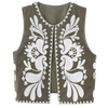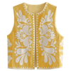 Het gilet is volledig gevoerd en voelt stevig maar soepel aan. De subtiele structuur van de stof en de nauwkeurige afwerking – denk aan de afgebiesde randen en het ritmisch geplaatste stiksel langs de zoom – versterken de kwaliteit van het ontwerp. Dit item straalt authenticiteit uit, terwijl het tegelijkertijd moeiteloos aansluit bij een hedendaagse garderobe. Of je nu kiest voor een bohemien stijl of juist een minimalistische uitstraling met een cultureel accent, dit gilet tilt je kleding meteen naar een hoger niveau.
