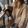 Deze comfortabele gebreide trui met een klassiek kabelpatroon en wijde mouwen biedt een moeiteloze combinatie van stijl en warmte. De relaxte pasvorm en grove breistructuur maken het een perfecte keuze voor koude dagen.
