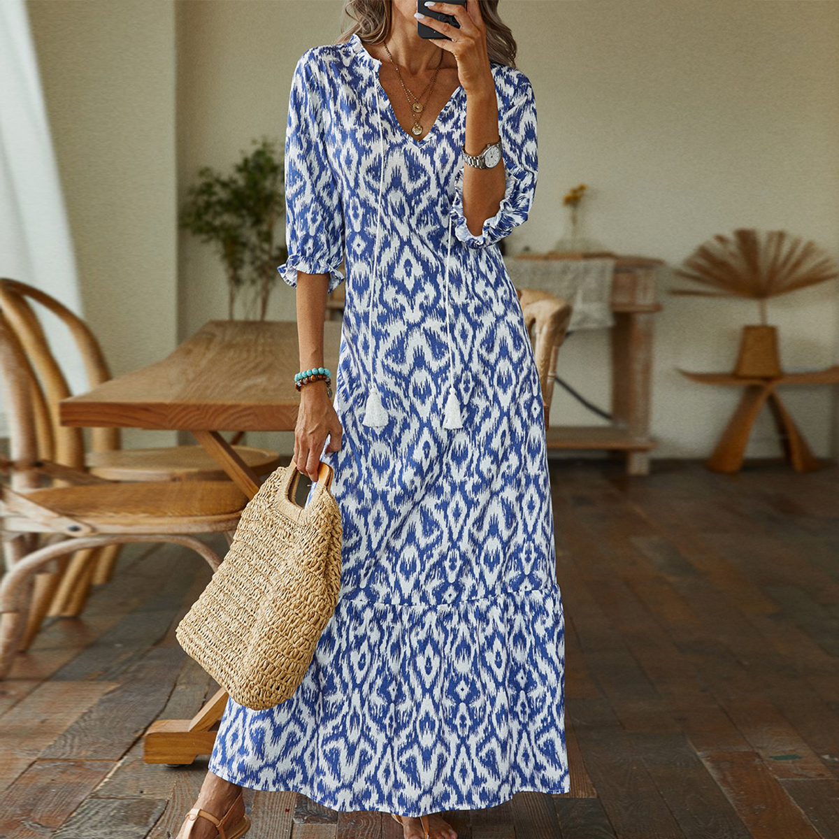 Creëer een moeiteloze en charmante kleding met deze prachtige bohemien maxi-jurk.