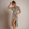 Dankzij het veelzijdige ontwerp is deze jurk gemakkelijk te stylen voor verschillende gelegenheden. Of je het nu combineert met hakken of platte schoenen, deze jurk biedt een stijlvolle en geraffineerde aanvulling op je garderobe.