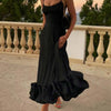 De jurk is een stijlvolle aanvulling op je avondgarderobe. Deze midi-jurk is ontworpen om je silhouet te accentueren en heeft delicate ruches die een vleugje vrouwelijkheid en elegantie toevoegen. Perfect voor diverse gelegenheden, combineert hij stijl en comfort.