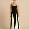 Deze verfijnde avondjurk straalt tijdloze elegantie uit met zijn vloeiende silhouet en speelse contrastdetails. De subtiele schouderbandjes en het getailleerde lijfje zorgen voor een flatterende pasvorm, terwijl de uitlopende rok een dynamische en gracieuze uitstraling geeft.