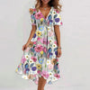 De Flowy Floral Summer Dress (knielengte) is een luchtige en elegante zomerjurk die moeiteloos comfort en stijl combineert. Met een flatterend A-lijn silhouet, zachte stof en een speelse bloemenprint is hij perfect voor warme dagen, vakanties of een casual chique look. De V-hals en korte mouwen zorgen voor een frisse, vrouwelijke touch.