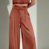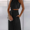Ervaar de perfecte mix van verfijning en gemak met deze luxueuze tweedelige set. Ontworpen voor de moderne vrouw, biedt deze set een harmonieuze balans tussen chique esthetiek en comfort de hele dag door.