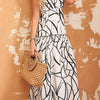 Deze maxi-jurk met grafisch patroon en ruches combineert een opvallend ontwerp met een vrouwelijke flair. De jurk is uitgevoerd in een opvallend grafisch patroon dat speels over de hele stof is verdeeld. Het zwart-witte ontwerp creëert een stijlvolle en eigentijdse uitstraling, perfect voor zowel ongedwongen als semi-formele gelegenheden. De elegante V-hals wordt omlijst door delicate ruches, die een romantische tintje toevoegen en het geheel verzachten.