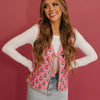 Dit speelse gilet biedt twee stijlen in één. De ene zijde heeft een charmante bloemen afdruk die zorgt voor een vrolijke en vrouwelijke uitstraling, terwijl de andere zijde voorzien is van een opvallende gestreepte voering voor een gedurfde twist. Het strikdetail aan de voorkant voegt een subtiele, sierlijke tintje toe en maakt het perfecte voor gelaagde uitstraling.