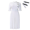 Verfijn je stijl met de tijdloze charme van de geplooide V-halsjurk. Deze jurk is flatterend en heeft delicate plooien langs een verfijnde V-halslijn, waardoor een sierlijk silhouet ontstaat dat prachtig met elke stap meebeweegt. Of je nu een formeel diner, een speciale gelegenheid of een informele bijeenkomst bijwoont, dit veelzijdige item combineert elegantie met gemak.