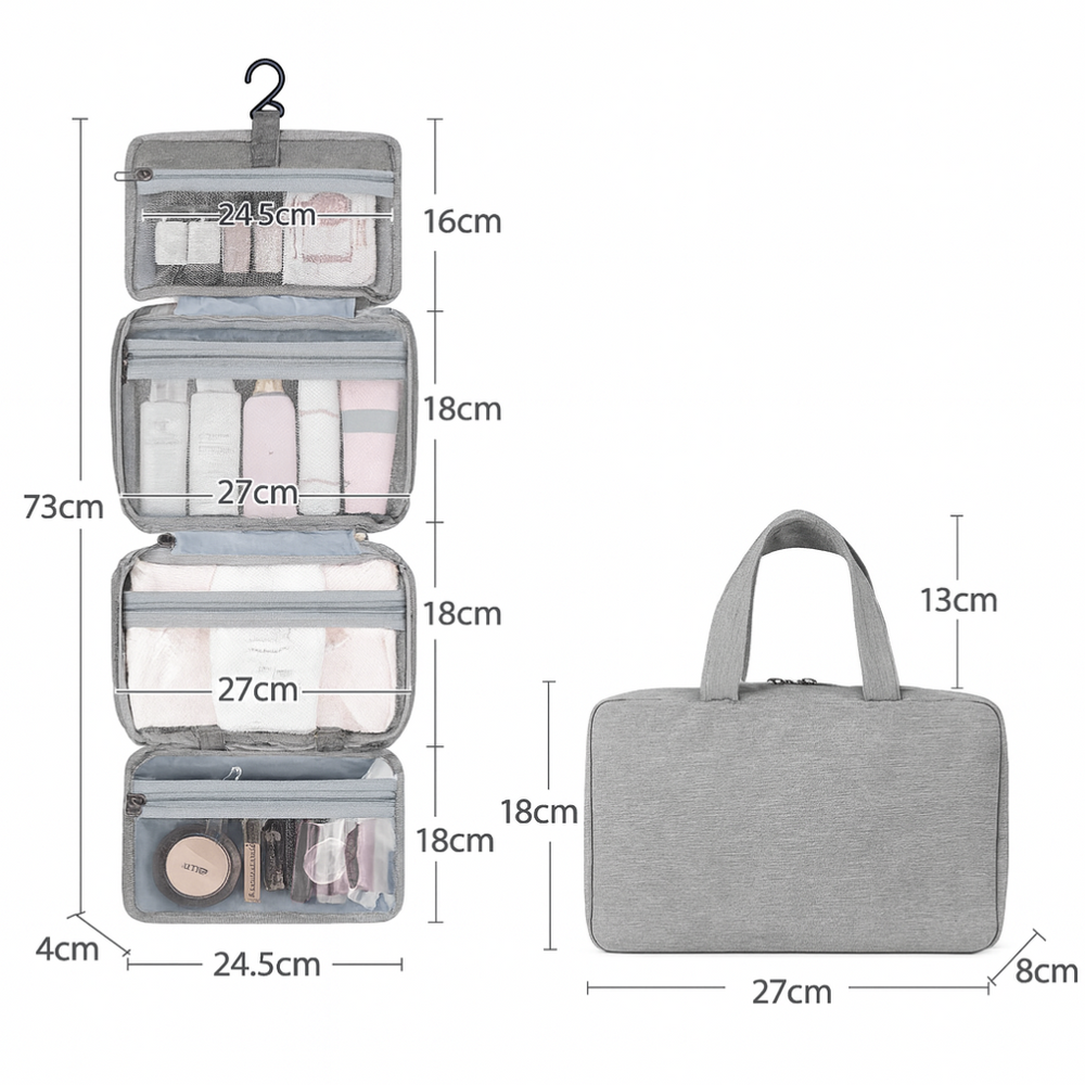 Houd je badkamerbenodigdheden georganiseerd en toegankelijk met deze veelzijdige toiletorganizer met meerdere compartimenten. Hij is ontworpen om open te hangen voor gemakkelijke toegang of compact op te vouwen voor op reis, en combineert een slim ontwerp met reisgemak.
