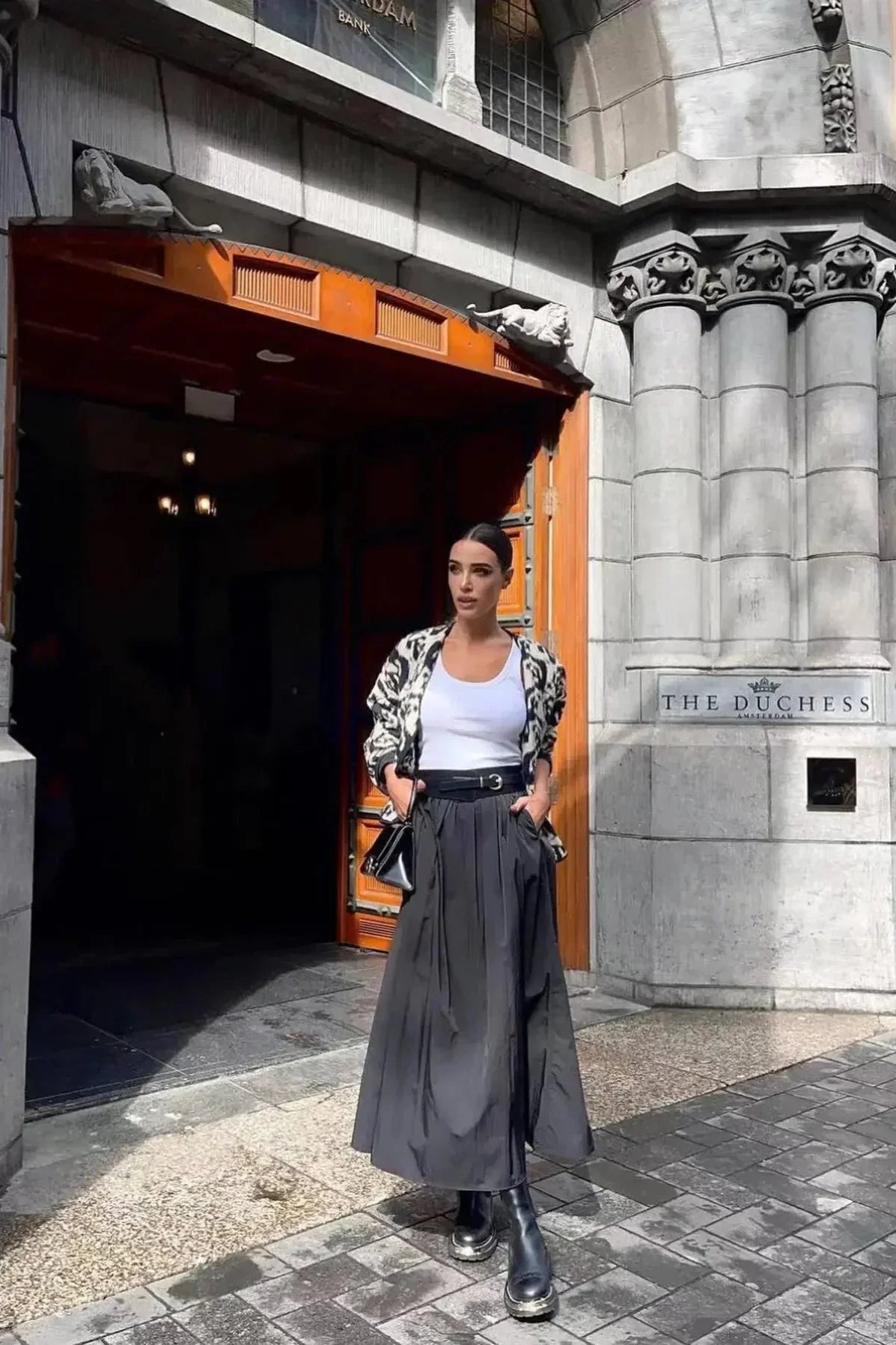 Combineer het met een minimalistische kleding, zoals een effen top en een high-waisted broek of rok, om de print echt te laten opvallen. Voeg accessoires zoals een strakke riem en subtiele sieraden toe voor een moeiteloos chique uitstraling.