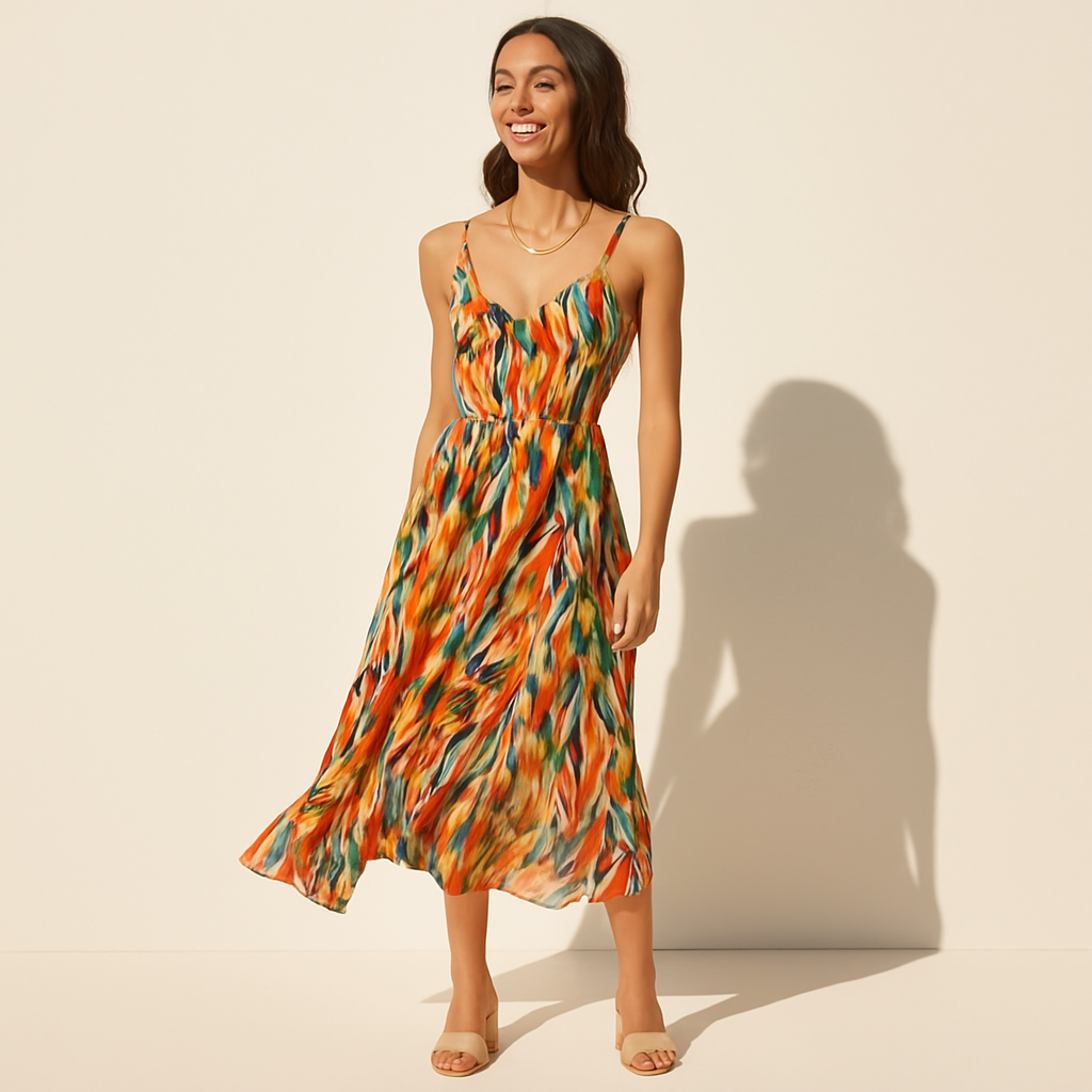 Zomerse uitjes, strandwandelingen, picknicks in het park of een cocktailfeest bij zonsondergang. Deze jurk is perfect voor wie comfort, stijl en zomerse charme in één wil combineren.