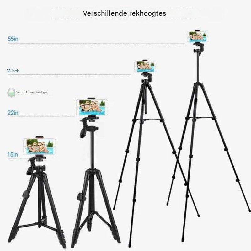 Verstelbaar en uitschuifbaar – Uitschuifbare poten en verstelbare hoogte voor perfecte kadrering en veelzijdige opnamehoeken.