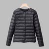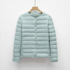 Blijf warm zonder extra volume in deze nieuwe ultralichte donsjas voor dames uit 2024, ontworpen met een minimalistische kraagloze look en een lichtgewicht constructie voor gemakkelijke laagjes. Gevuld met eersteklas witte eendendons biedt deze draagbare puffer behaaglijke warmte in een strak, opvouwbaar ontwerp, perfect voor wisselvallig weer, reizen of dagelijks gebruik.