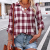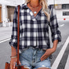 Geruite blouse met lange mouwen en V-hals voor dames