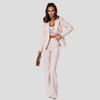 Een stijlvolle tweedelige set bestaande uit een blazer en bijpassende pantalon, ontworpen voor elegantie in de warme seizoenen. De strakke snit en verfijnde lijnen maken de set ideaal voor werk, vergaderingen of een chique casual uitje.