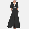 Voeg een vleugje moeiteloze elegantie toe aan je garderobe voor warm weer met deze maxi-jurk met bloemenprint voor dames. Met een flatterende V-hals, natuurlijke taille en een A-lijn tot aan de enkels is deze jurk perfect voor casual uitjes, tuinfeesten of zomervakanties. De lichtgewicht polyester-spandexmix zorgt voor een zacht, comfortabel gevoel met een aansluitende pasvorm die je figuur accentueert zonder je bewegingsvrijheid te beperken.