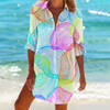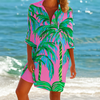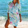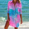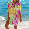 Geef je strandkleding een levendige flair met deze losvallende blouse met veelkleurige print, perfect als bikinitop of als stijlvol vakantieshirt. Met een omslagkraag, lange mouwen en een vloeiende, lange pasvorm combineert deze blouse met één rij knopen moeiteloos comfort met mode. De polyester-spandexmix zorgt voor een lichtgewicht, sneldrogende pasvorm, ideaal voor stranddagen of een frisse wandeling.